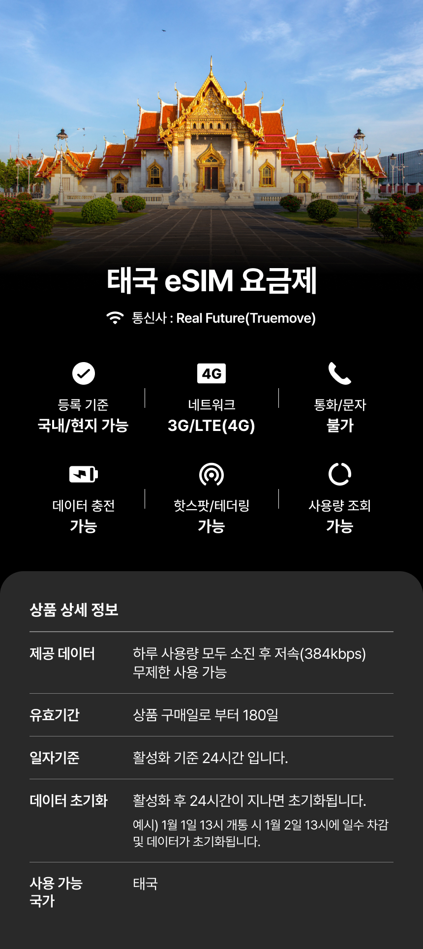 [태국] eSIM 데이터 무제한 (1GB)