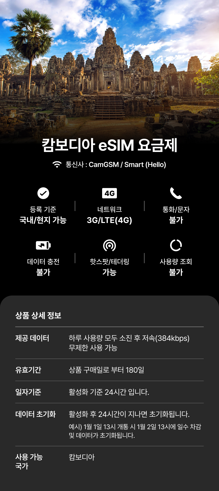 [캄보디아] eSIM 데이터 무제한 (2GB)