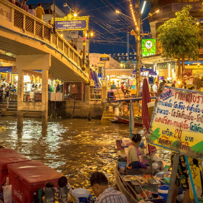태국의 독특한 수상시장 문화를 경험할 수 있는 암파와 주말시장으로 떠납니다. 운하 주변 아기자기한 각종 상점과 먹거리가 끝없이 늘어서 있으며 밤에는 물을 따라 야경과 함께 또다른 세상이 펼쳐져 현지인들은 물론 외국 관광객들의 발길이 끊이지 않는 곳입니다. 또한 한국에서는 잘 볼 수 없는 반딧불이 체험까지! 알찬 방콕 근교 여행을 떠나보세요.
