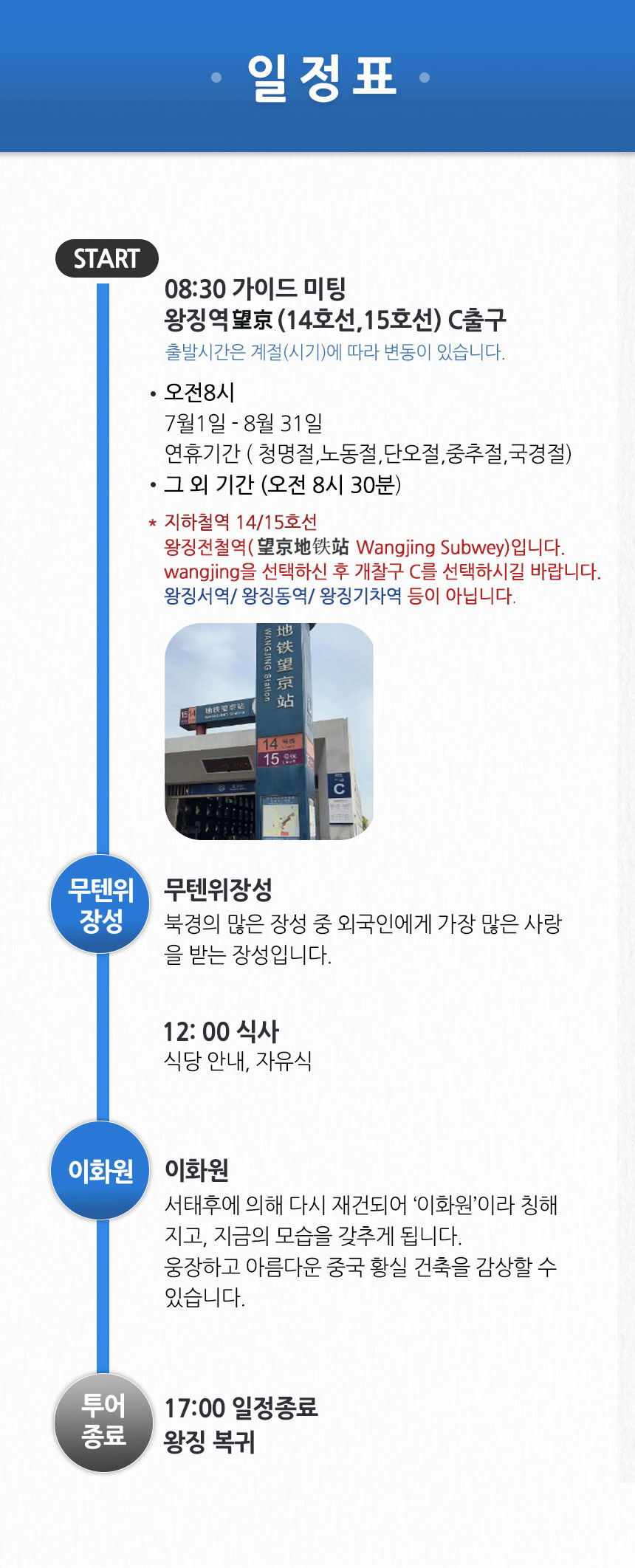 시간이 부족해서 이틀 코스를 못 넣는 게 아쉬웠는데 이 투어 덕분에 만리장성이랑 이화원을 하루에 다 봤네요