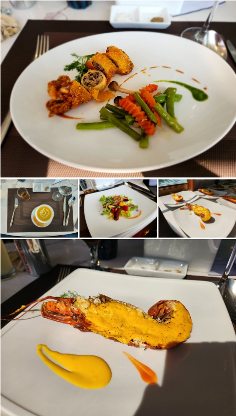 이후 중식이 제공됩니다. 중식은 세트메뉴로, 특징으로는 ​랍스터(크레이피쉬) 반마리 가 제공됩니다. 식사량은 조금 많다 싶은 수준이고 스프와 같이 제공되는 반미빵이 너무 맛있어서 한번더 요청했었습니다. 음식 추가는 현상 상황에 따라 유동적으로 제공됩니다