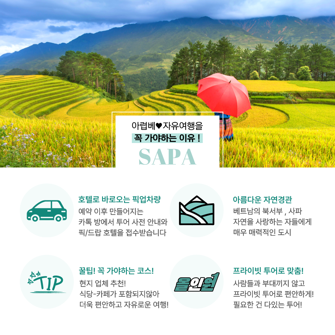 사파의 필수코스를 우리끼리 오붓하게 여행할 수 있는 프라이빗 투어입니다!!