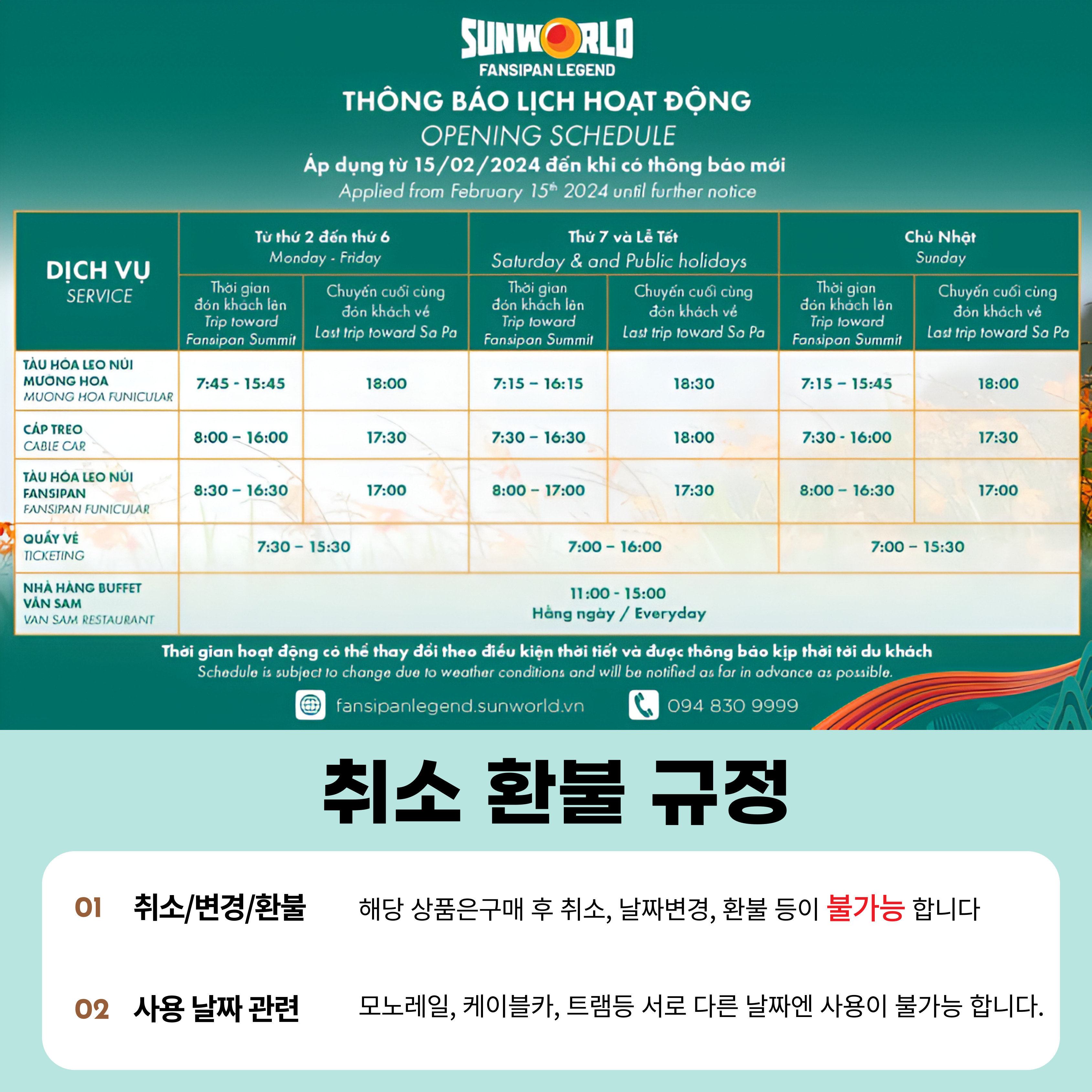 모든 취소, 변경의 접수 마감 시간은 평일(월~금), 한국시간 오후 6시(베트남 시간 오후 4시) 입니다