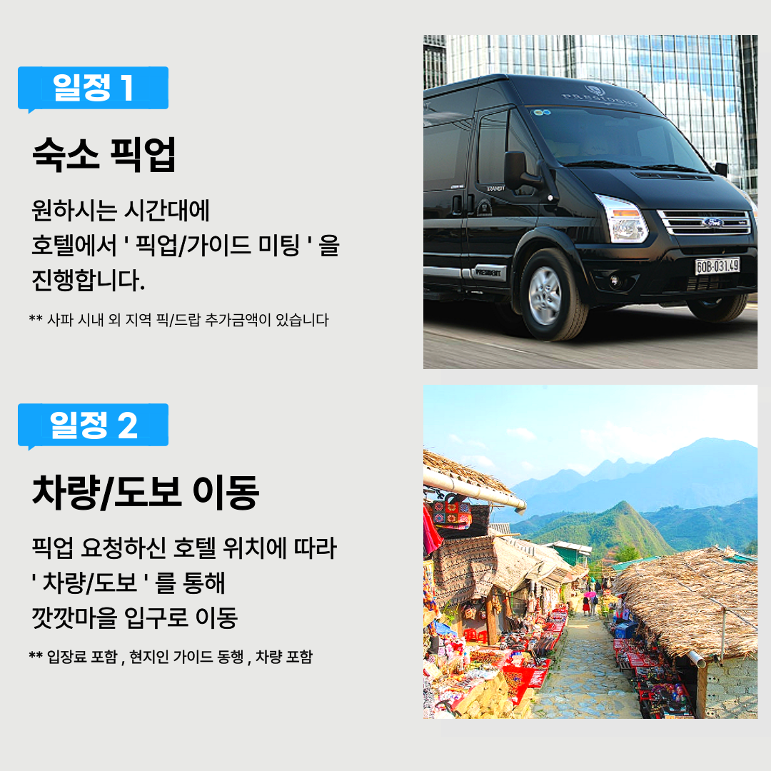 픽업&샌딩(사파 시내 외 구역 픽업/샌딩 시 비용 추가됩니다.)