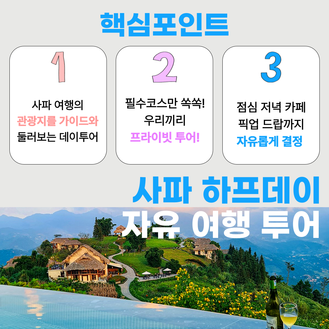 = 사파 지역 특성상 영어로 의사소통이 가능해야 하며, 최소한 파파고 를 포함한 어플을 이용한 의사소통에 적극적 이실 수록 편리합니다.