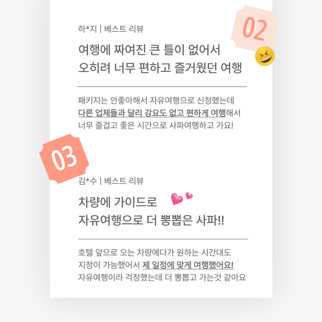 • 식사/카페 불포함 일정으로 좀 더 편안하고 자유로운 여행