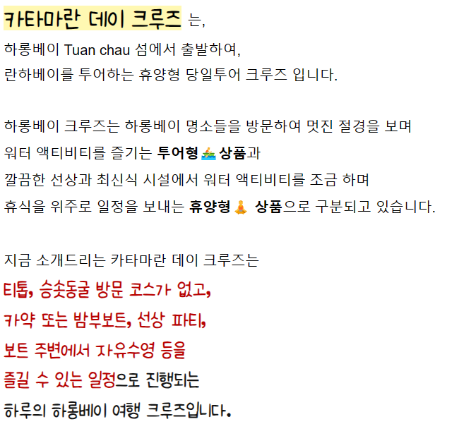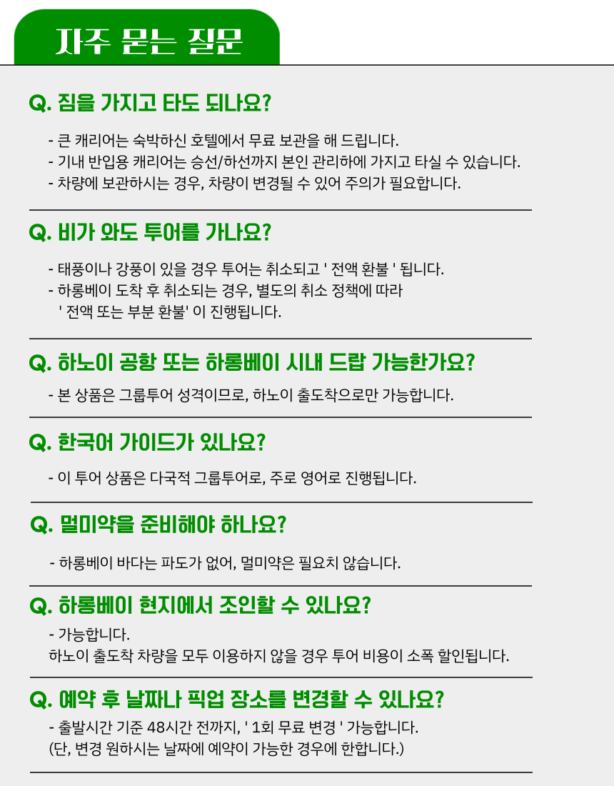 🚢하롱베이 크루즈 및 투어상품 취소및 변경 수수료