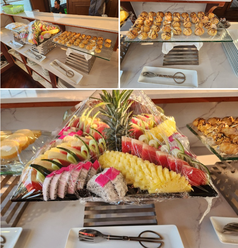 이후 중식이 제공됩니다. 중식은 세트메뉴로, 특징으로는 ​랍스터(크레이피쉬) 반마리 가 제공됩니다. 식사량은 조금 많다 싶은 수준이고 스프와 같이 제공되는 반미빵이 너무 맛있어서 한번더 요청했었습니다. 음식 추가는 현상 상황에 따라 유동적으로 제공됩니다