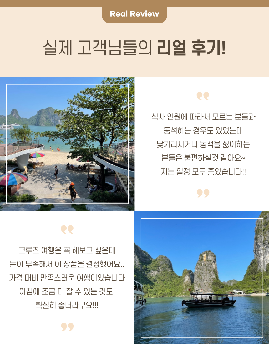 ☞ 하롱베이 주요 관광지 세 곳을 모두 방문하며 저렴한 가격에 알찬 데이 크루즈를 찾으신다면 추천드립니다!
