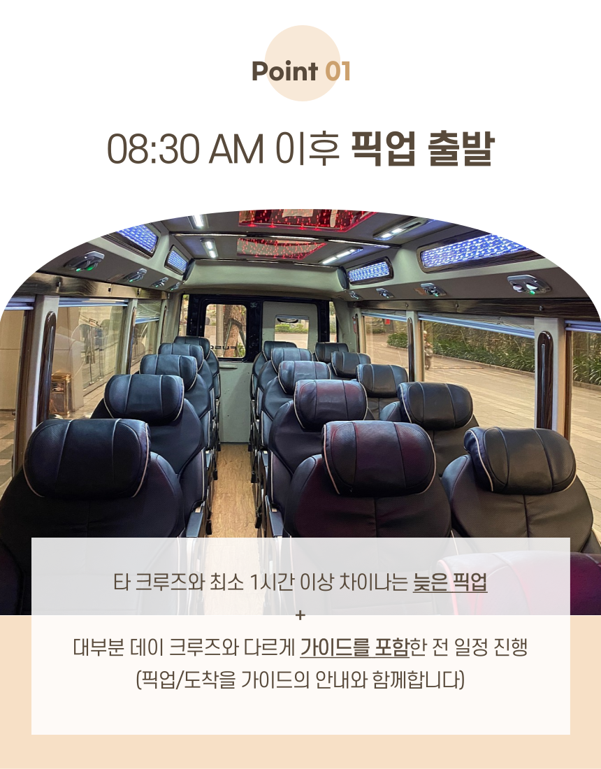 요즘 대부분 데이 크루즈가 06:00~07:00AM 픽업인데 08:30AM이후 픽업 출발을 원하시는 분