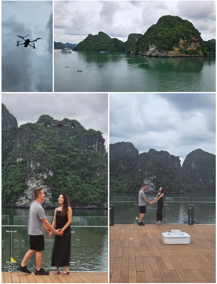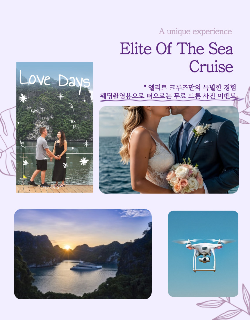 하롱베이 크루즈 상품중 유일하게 드론을 이용해 승객들의 사진을 찍어드리는 서비스를 제공하고 있습니다