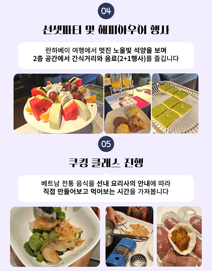 • 크루즈 내 서비스 (음료,스파,마사지 등)을 이용할 수 있는 1객실/500,000VND 상당의 무료 바우처 제공