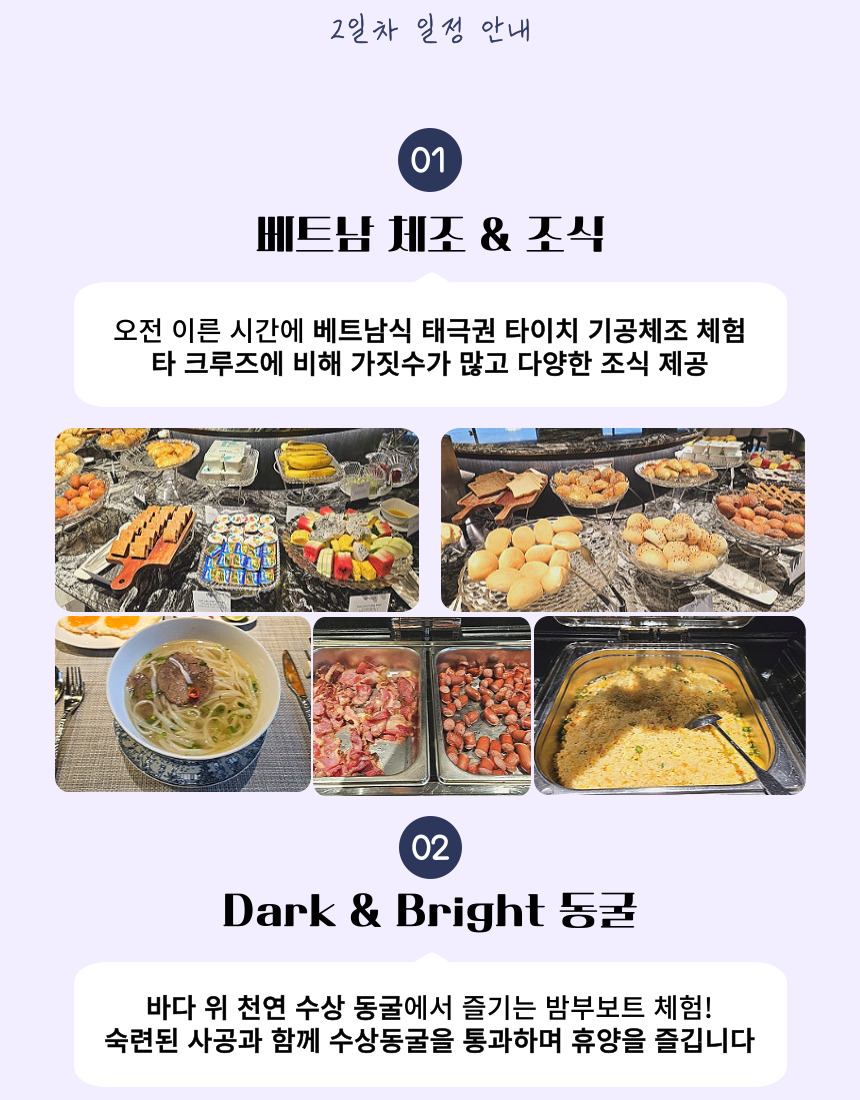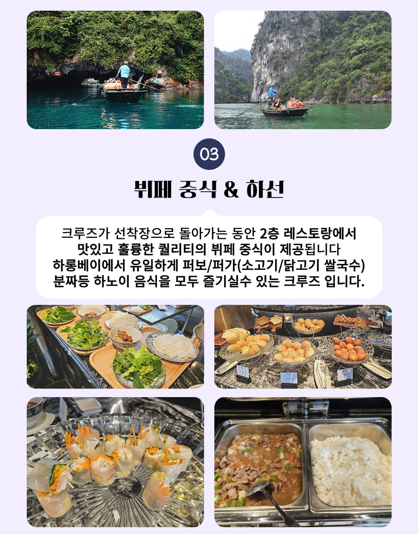 - 크루즈에서 분짜나 다양한 쌀국수 종류, 맛있는 빵등 퀄리티가 뛰어난 식사&간식 들