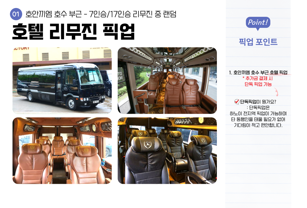 • 롯데, 서호 인터컨, 미딩 등 은 픽업 불가 구역입니다 . 호안끼엠 인근 구역 픽업만 가능합니다.
