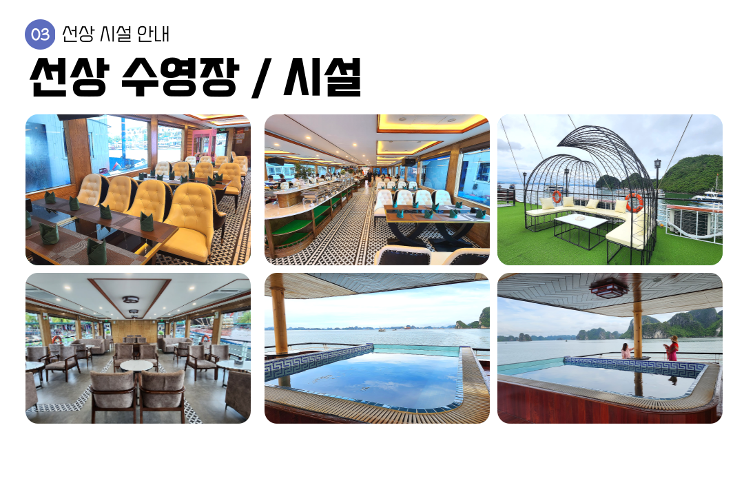악기상 또는 선박의 문제 등으로, 선상 숙박을 대신하여 하롱베이의 호텔 숙박이 제공된 경우에는 환불되지 않습니다.