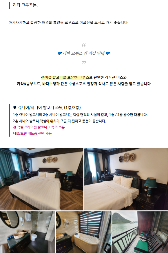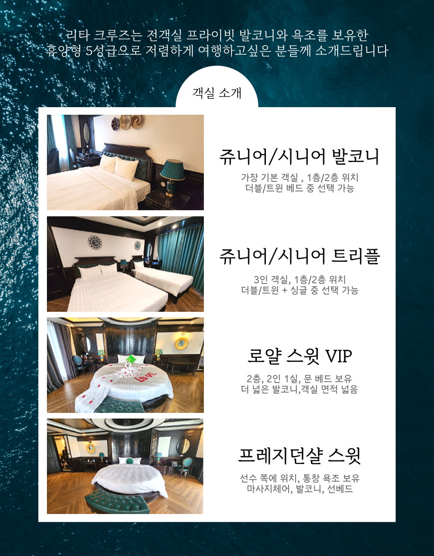 [하롱베이] 리타 크루즈 1박2일 크루즈+왕복 리무진 차량 포함 #휴향형