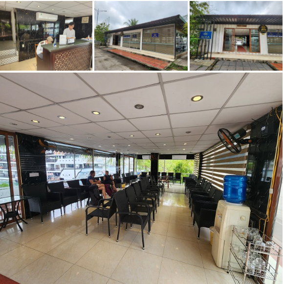 도착 후 체크인을 하며 약 30분이상 대기 후 스피드 보트를 이용하여 크루즈로 이동합니다 전날 크루즈를 이용하신 손님들 배웅 후 객실 내부 청소및 크루즈 내부 정리 정돈을 위한 대기시간으로 승선 대기 장소가 따로 있어 쾌적한 환경에서 대기할수 있습니다