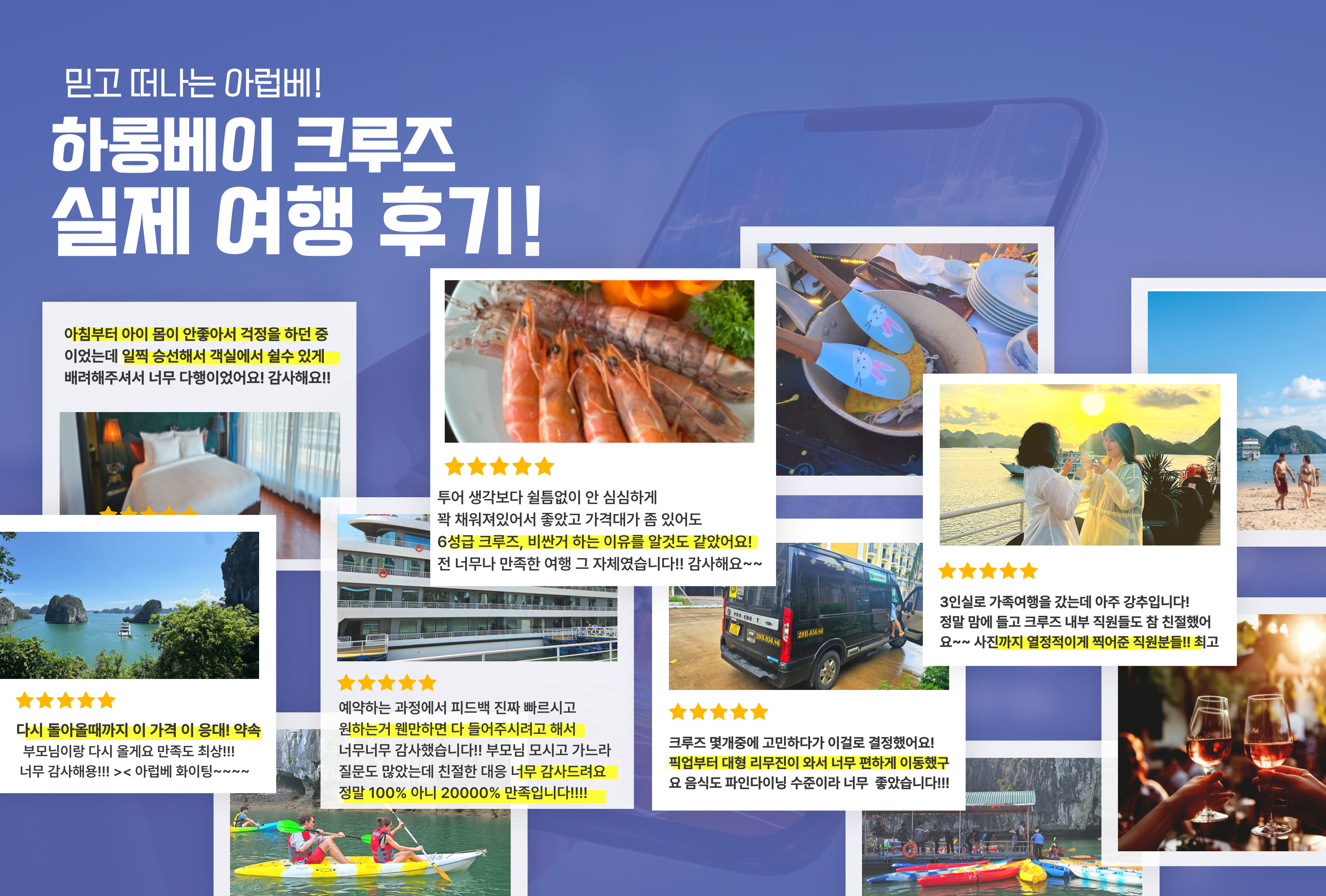 특히 하롱베이 크루즈 관련 리뷰에서는 제공된 식사의 품질, 크루즈의 규모, 그리고 작은 배로 갈아타는 경험 등이 긍정적으로 평가되었습니다. 고객들은 아이러브베트남을 통해 예약한 여행에서 편안하고 즐거운 시간을 보냈다고 언급하며, 특히 가족 단위의 여행객들 사이에서 높은 만족도를 보였습니다.