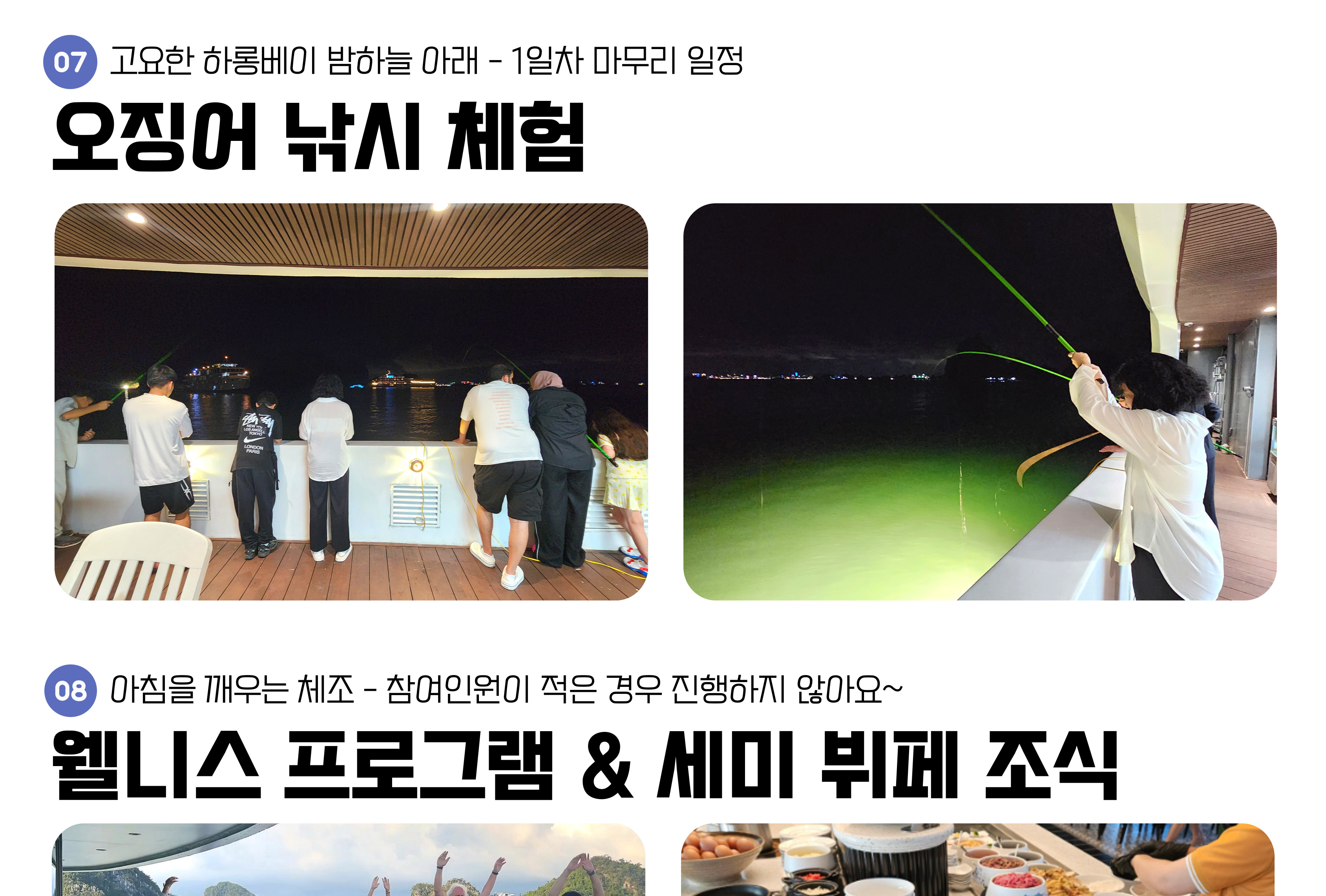 * 지금부터 이하 내용들은, 당일 크루즈 현장 상황에 따라 예고 없이 변경될 수 있습니다.