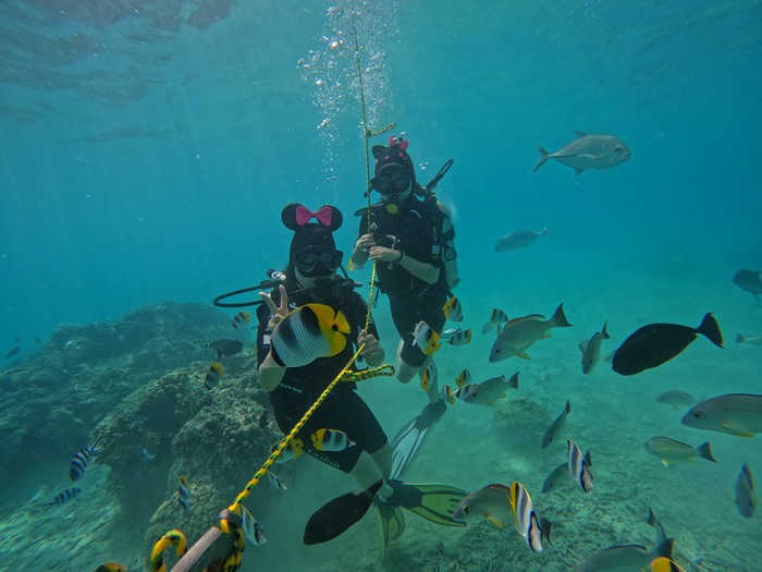 - 바닷속 탐험: 강사가 손을 잡고 1:1로 케어하며, 본격적인 수중 탐험이 시작됩니다. 형형색색의 산호초와 열대어 사이를 유영하고, 물고기 밥주기 체험을 하며 괌의 바다와 하나가 됩니다. (수중 약 30~40분)
