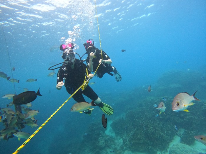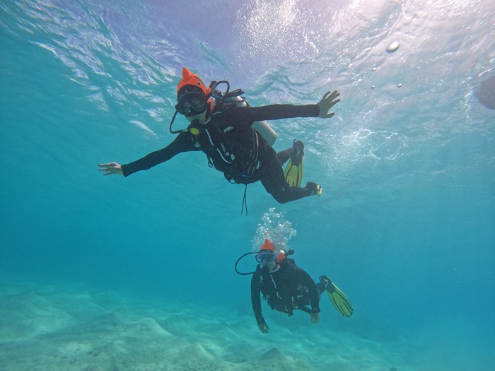 - 포인트 이동 및 실습: 선택한 다이빙 포인트(패밀리비치/피쉬아이)로 이동하여, 얕은 물에서 배운 내용을 직접 실습하며 물과 장비에 적응합니다.