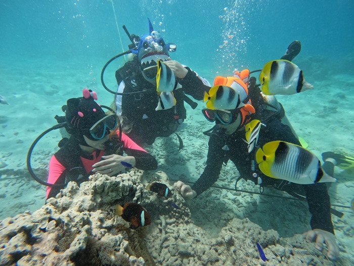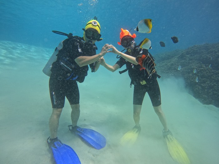 수심 5~10미터로 낮은 바닷가에서 부터 피쉬아이가 있는 곳은 체험다이빙을 하기에 가장 적합한 곳이죠.