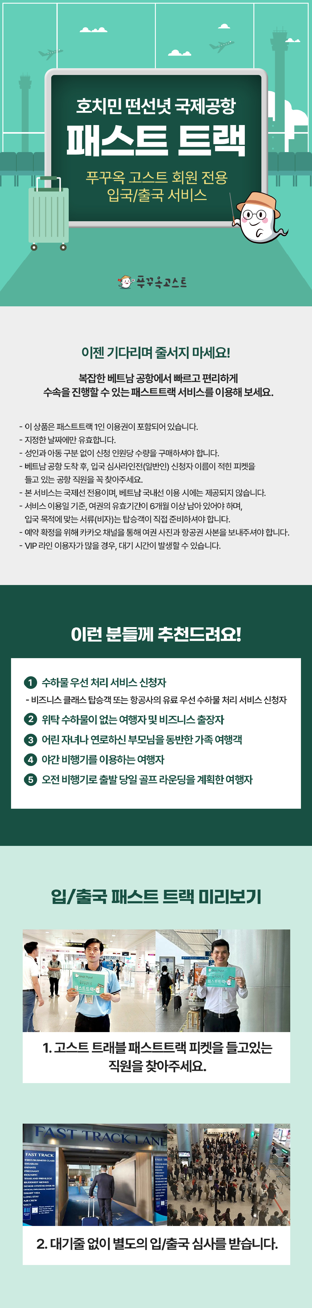 대기시간을 줄이고 빠르게 입국심사를 나갈수 있는 호치민 패스트트렉입니다
