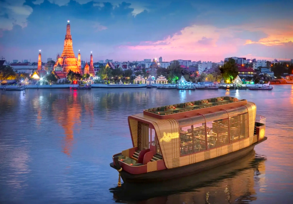 매일 오후 6시 45분 출발하는 크루즈로 짜오프라야 강을 따라 풍요로운 문화 체험을 하며 횡단합니다.