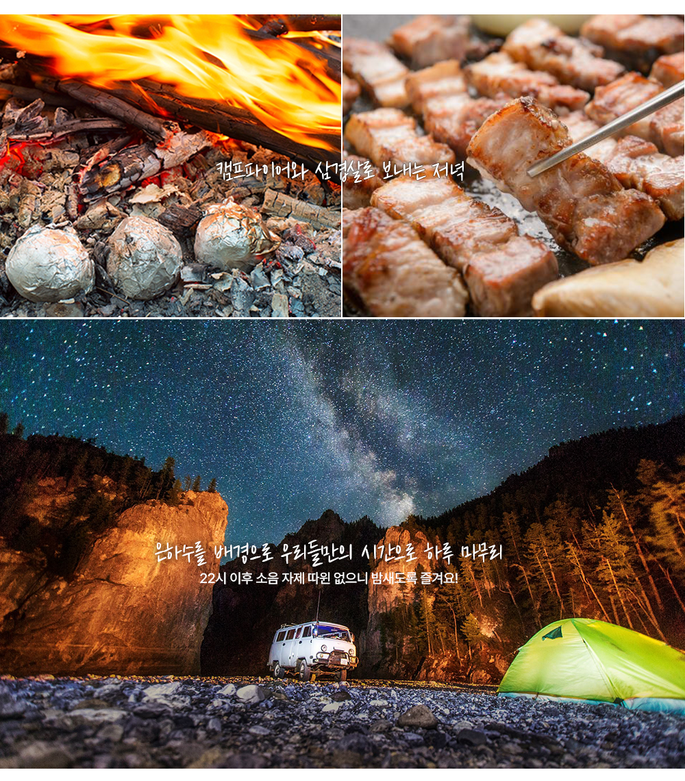• 석식 이후 가이드의 퇴근 및 개인 시간이 보장되며, 캠프 내 과도한 음주·소음으로 다른 여행객에게 불편을 주지 않도록 매너를 지켜주세요.
