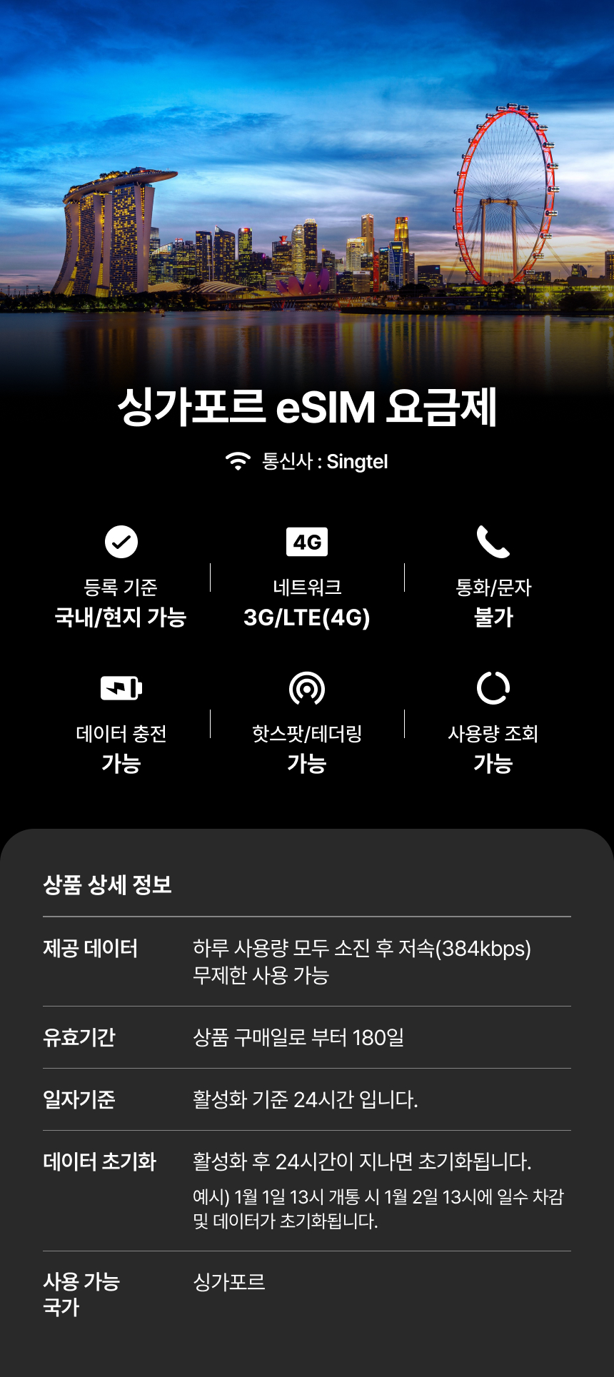 [싱가포르] eSIM 데이터 무제한 (3GB)