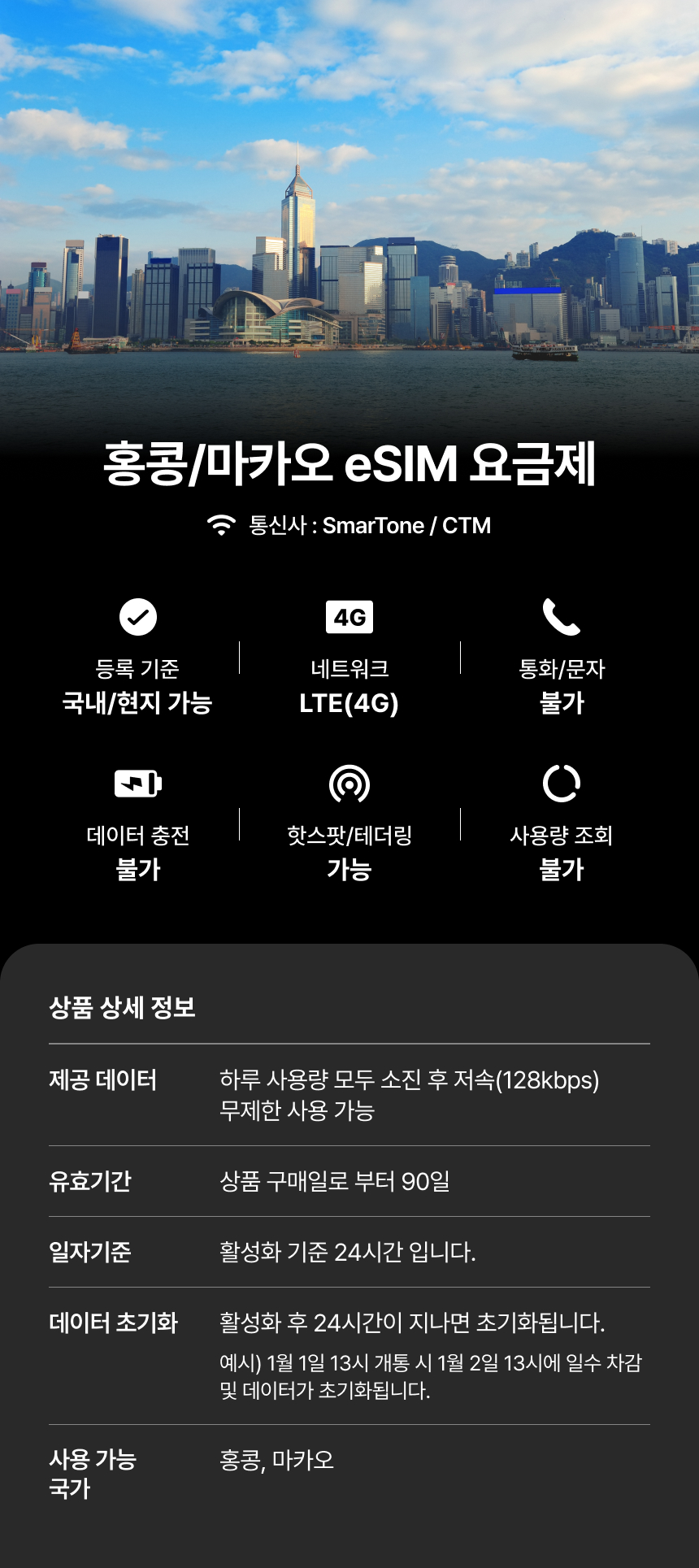 [홍콩/마카오] eSIM 데이터 무제한 (3GB)