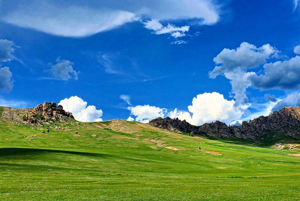 드넓은 초원 및 끝없는 푸른하늘의 지평선, 낮게 수놓은 뭉개구름을 감상하시면서 이동합니다.