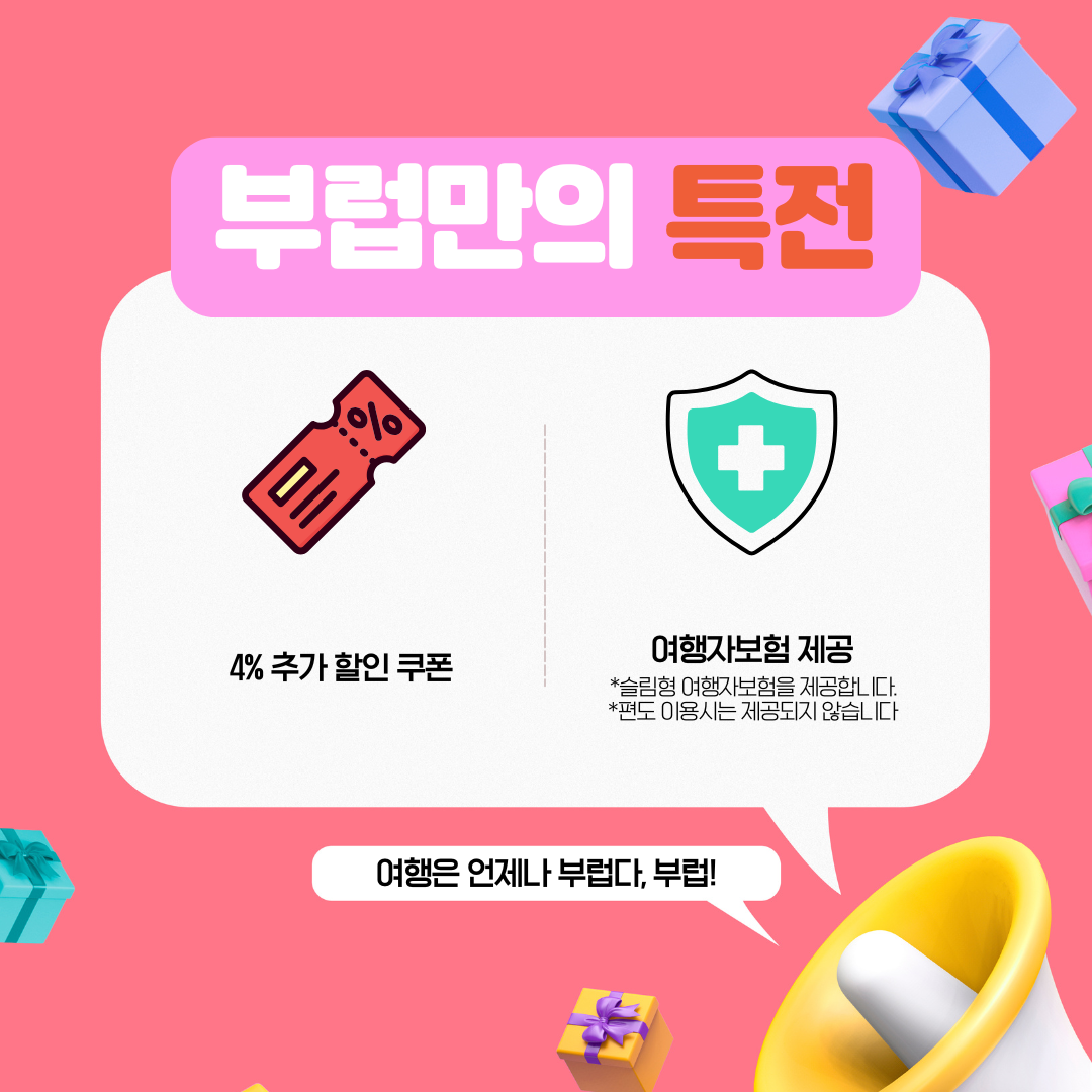 • 여행, 부러운 일상이 되다. 여행의 시작부터 끝까지 고객님의 특별한 일상을 위해 부럽이 함께합니다. 궁금한 점은 언제든지 1:1 문의하기를 눌러주세요. 주말·공휴일에도 빠르게 도와드립니다.