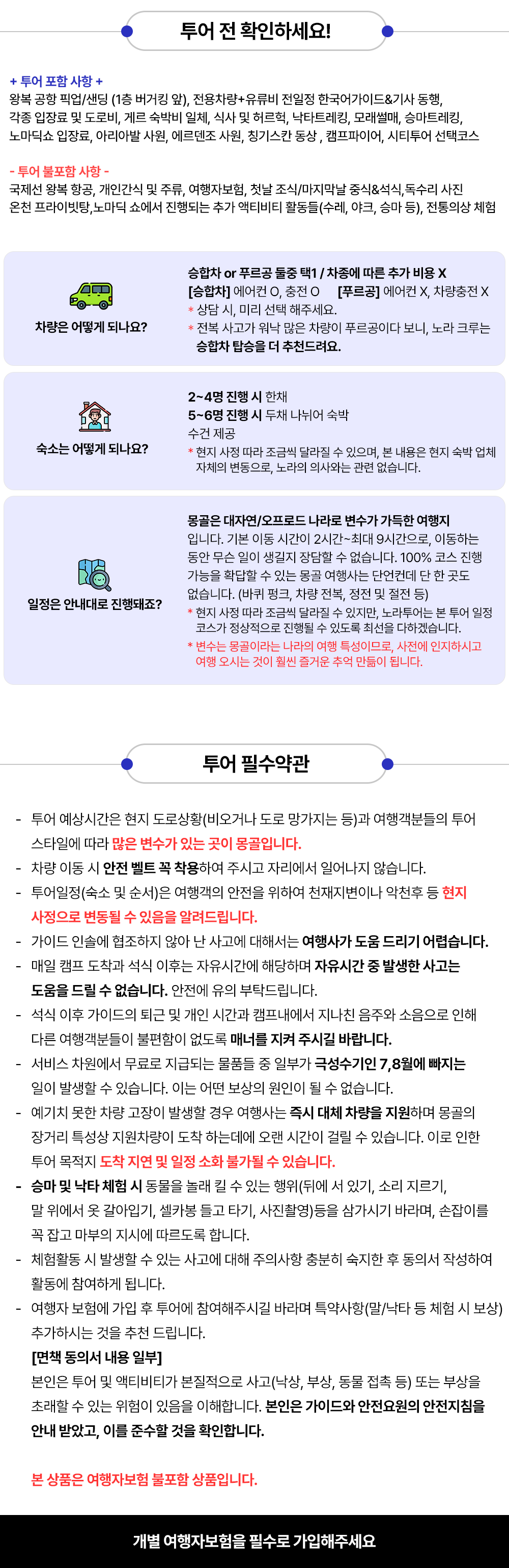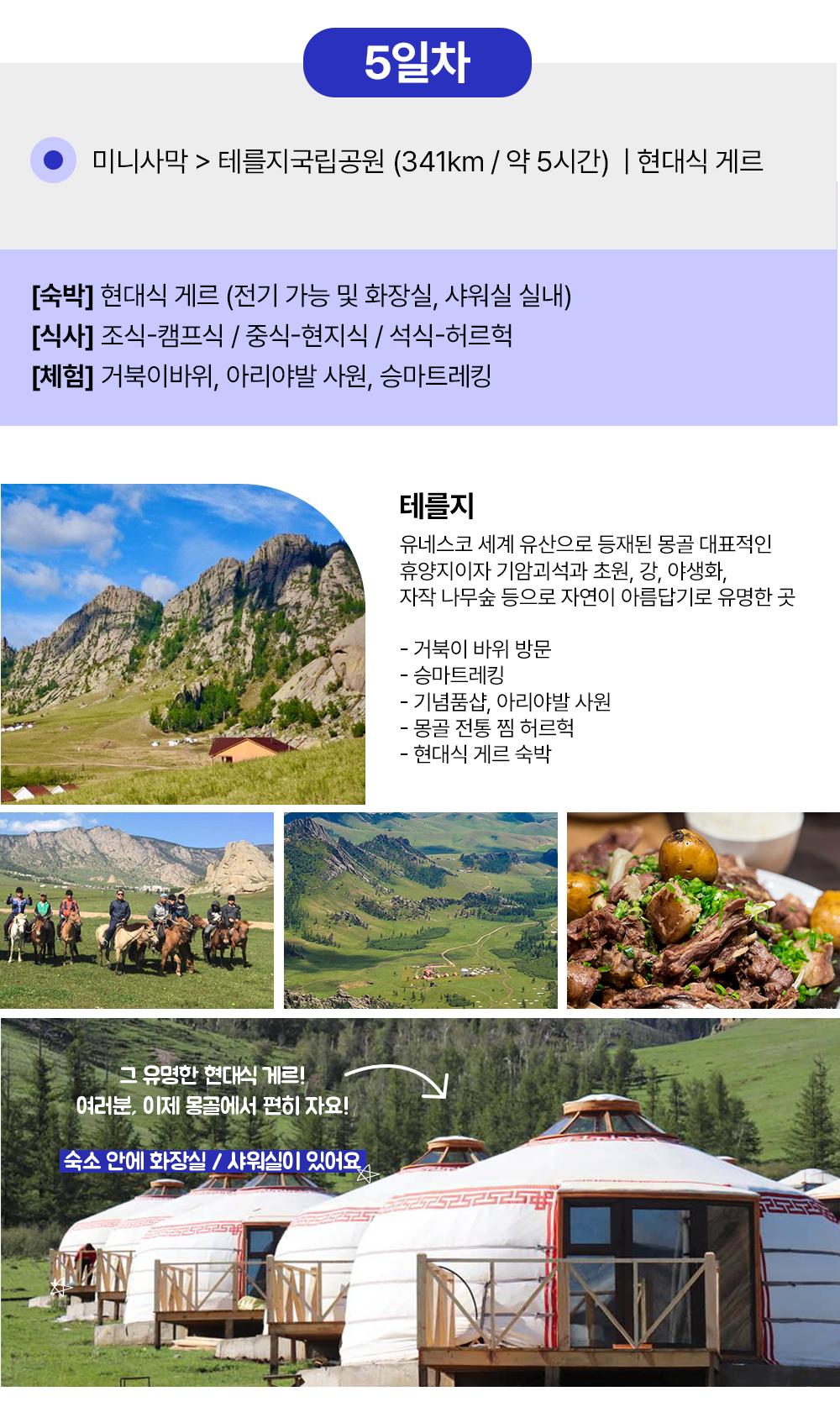 [몽골] 중부몽골 5박6일 정복코스  (노마딕+중부+테를지)