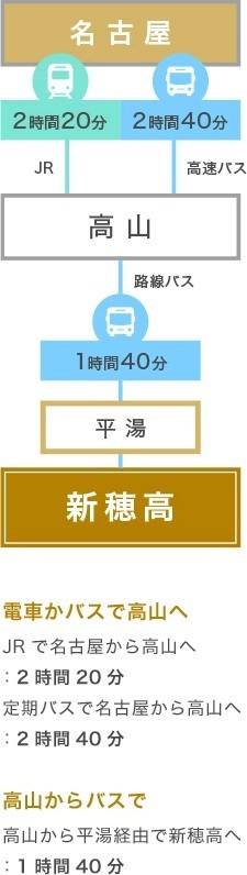 주소 : 〒506-1421 岐阜県高山市奥飛騨温泉郷新穂高温泉 공식 홈페이지 일본어 : https://shinhotaka-ropeway.jp/ 바로가기 영어 : https://shinhotaka-ropeway.jp/en/ 바로가기 ・전철 및 버스 ·JR로 오사카에서 다카야마(3시간 30분) + 정기버스로 다카야마에서 신호타카(1시간 40분) ·JR로 나고야에서 다카야마(2시간 30분) + 정기버스로 다카야마에서 신호타카(1시간 40분) ·고속버스로 나고야에서 다카야마(2시간 45분) + 정기버스로 다카야마에서 신호타카(1시간 40분) ·JR로 신주쿠에서 마쓰모토(2시간 40분) + 정기버스로 마쓰모토에서 신호다카(2시간 30분) ※자세한 내용은 공식 홈페이지를 확인해 주세요.