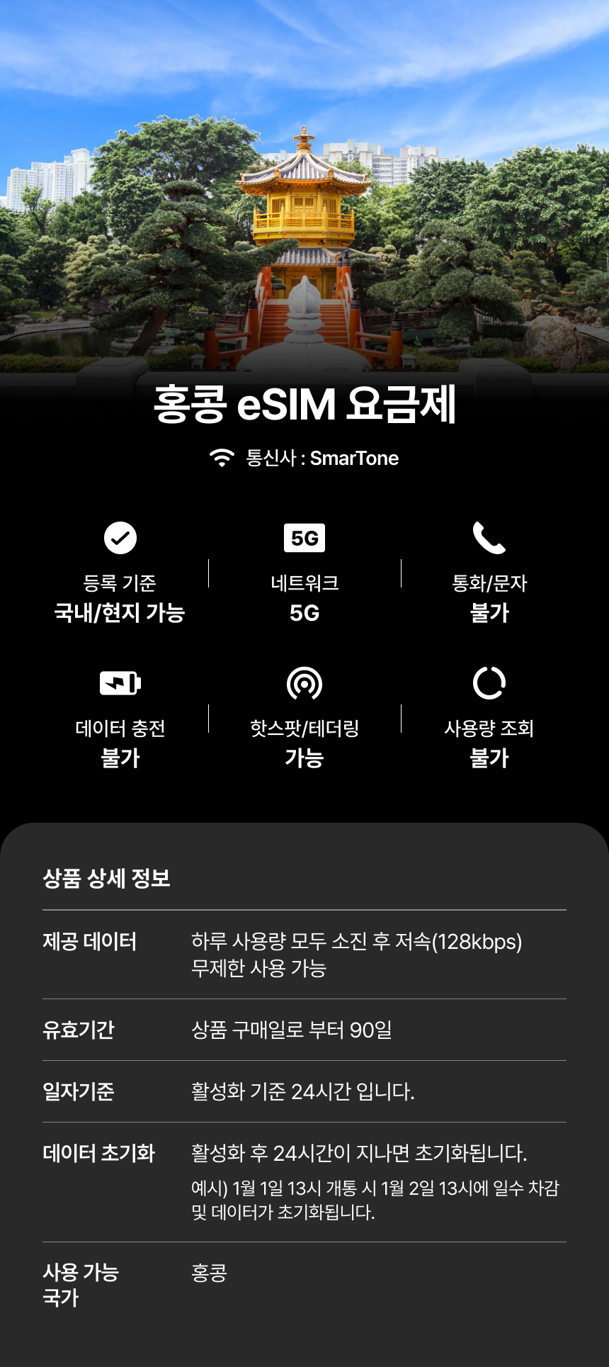 [홍콩/마카오] eSIM 데이터 무제한 (1GB)