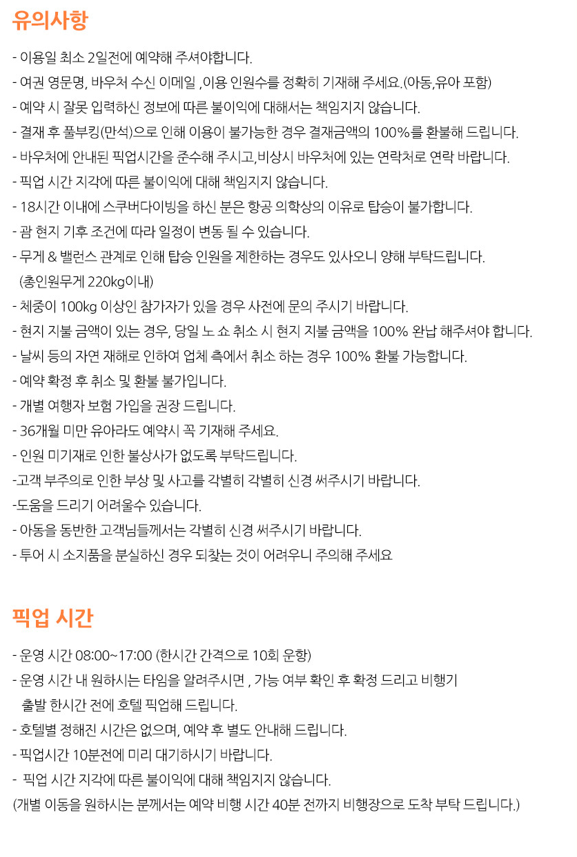 • 투어 3일 전 취소(한국시간 17시까지): 전액 환불