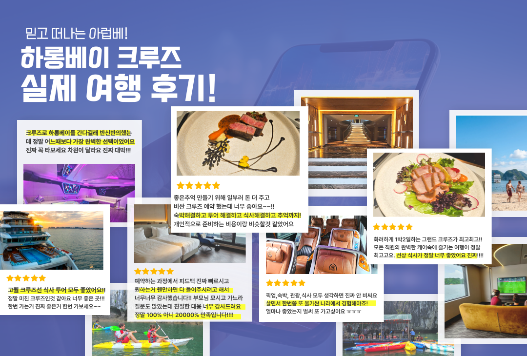 특히 하롱베이 크루즈 관련 리뷰에서는 제공된 식사의 품질, 크루즈의 규모, 그리고 작은 배로 갈아타는 경험 등이 긍정적으로 평가되었습니다. 고객들은 아이러브베트남을 통해 예약한 여행에서 편안하고 즐거운 시간을 보냈다고 언급하며, 특히 가족 단위의 여행객들 사이에서 높은 만족도를 보였습니다.