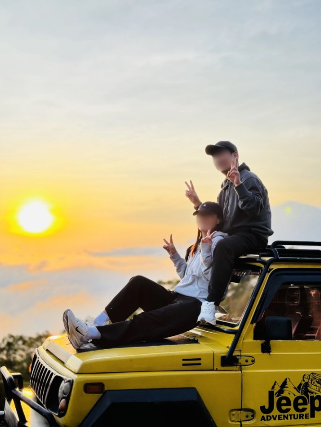 새벽에 사륜구동 지프차를 타고 일출 포인트 도착합니다.