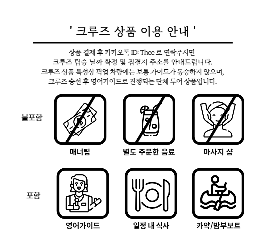 * 지금부터 이하 내용들은, 당일 크루즈 현장 상황에 따라 예고 없이 변경될 수 있습니다.