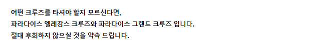 어떤 크루즈를 가셔야 할지 모르신다면 파라다이스 그룹의 크루즈를 추천드려요.