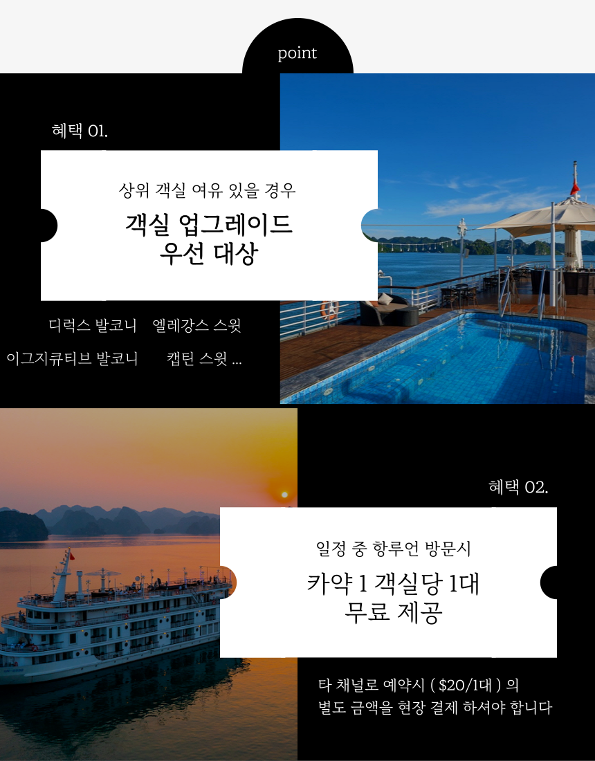 • 하롱베이의 삼성, 파라다이스 그룹에서 운영하는 투어형 크루즈 입니다.