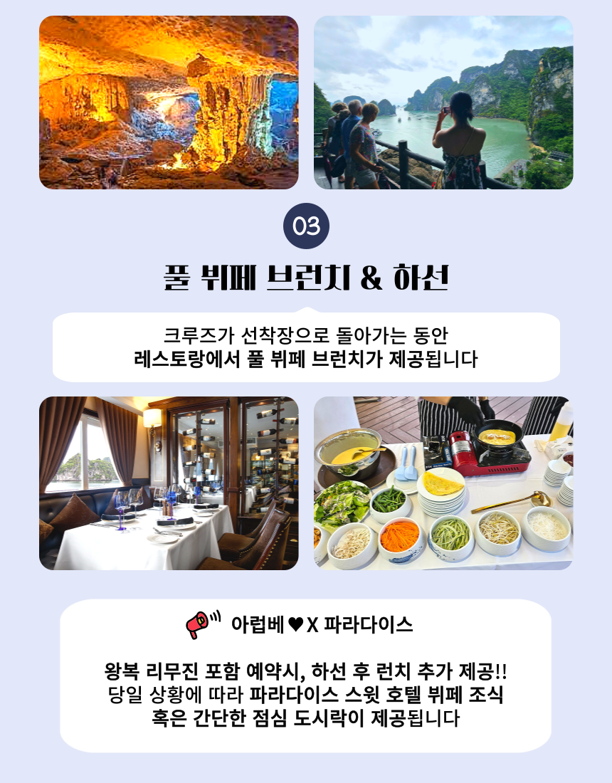 [하롱베이] 파라다이스 엘레강스 1박2일 크루즈 #픽업샌딩 #투어형