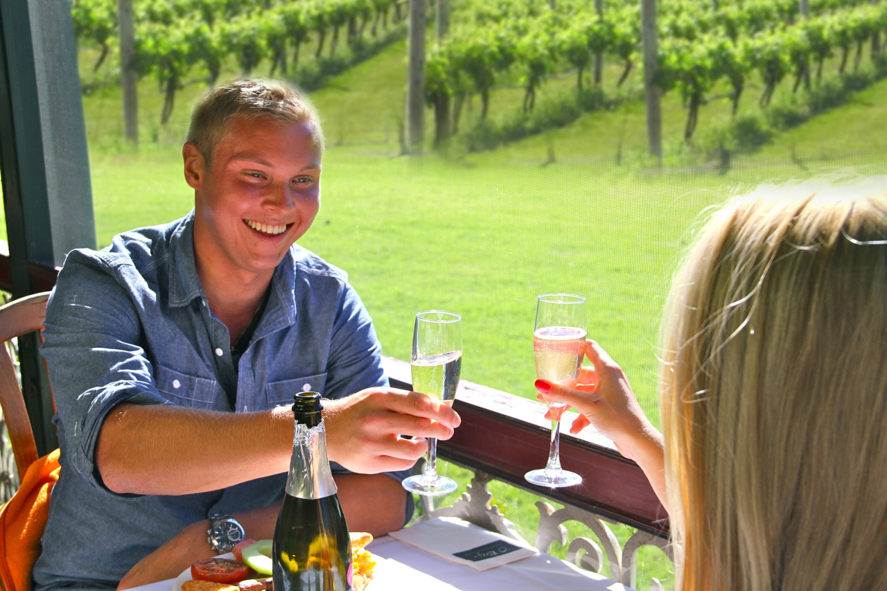 비행 후 스파클링 와인과 함께 오라일리 캐눈그라 밸리 와이너리의 포도밭에서 아침식사를 즐겨 보세요.