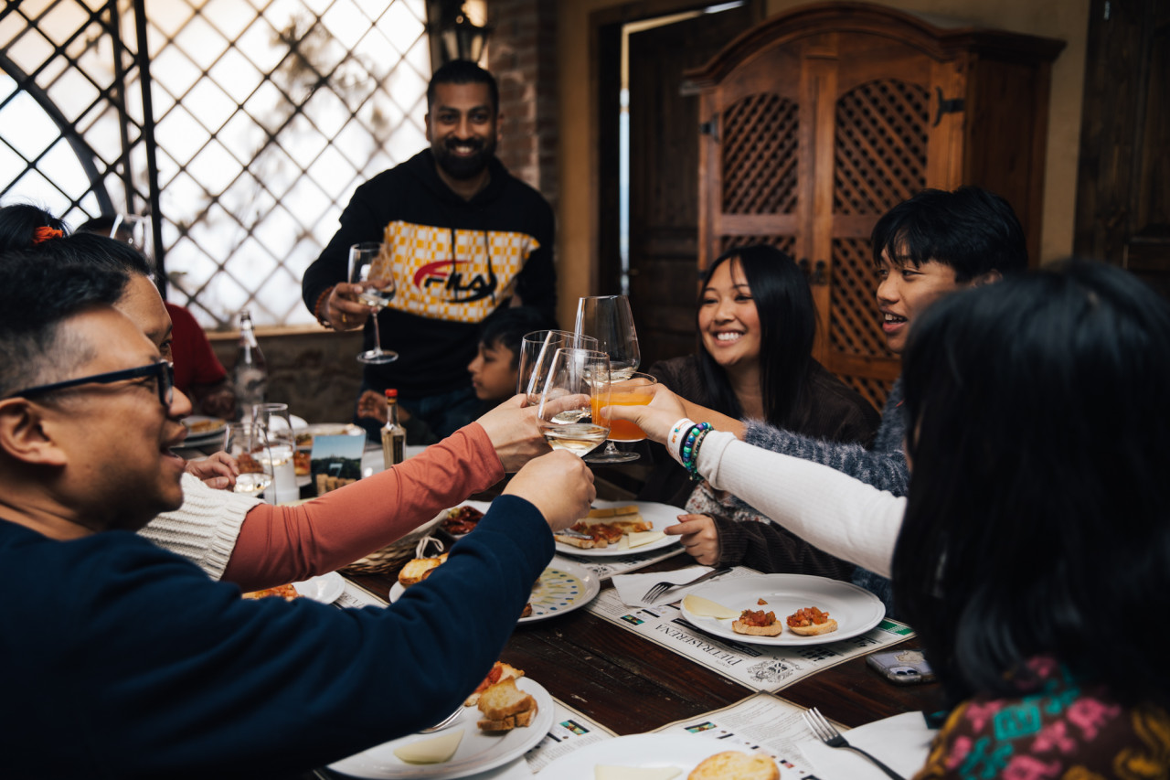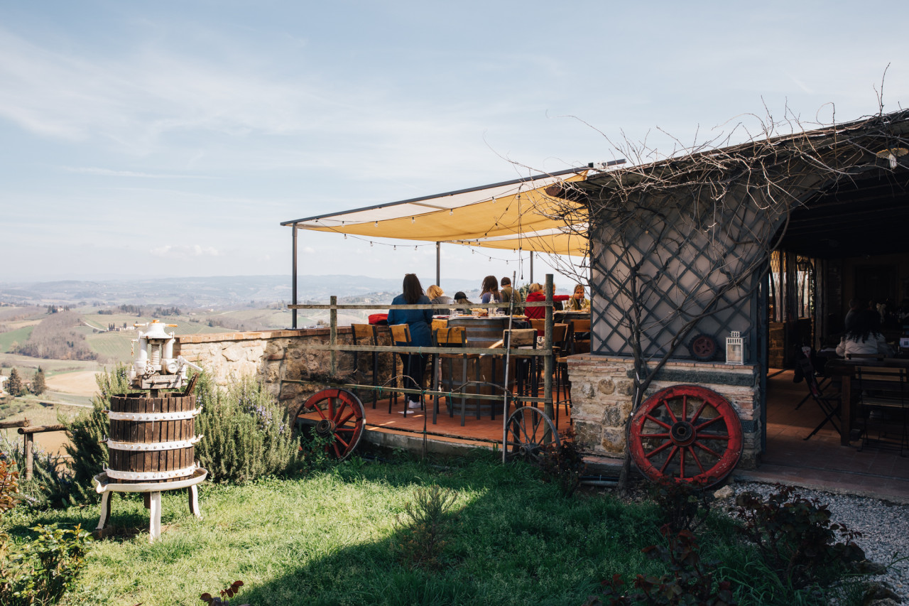 토스카나식 점심 식사와 와인 시음을 즐겨보세요.