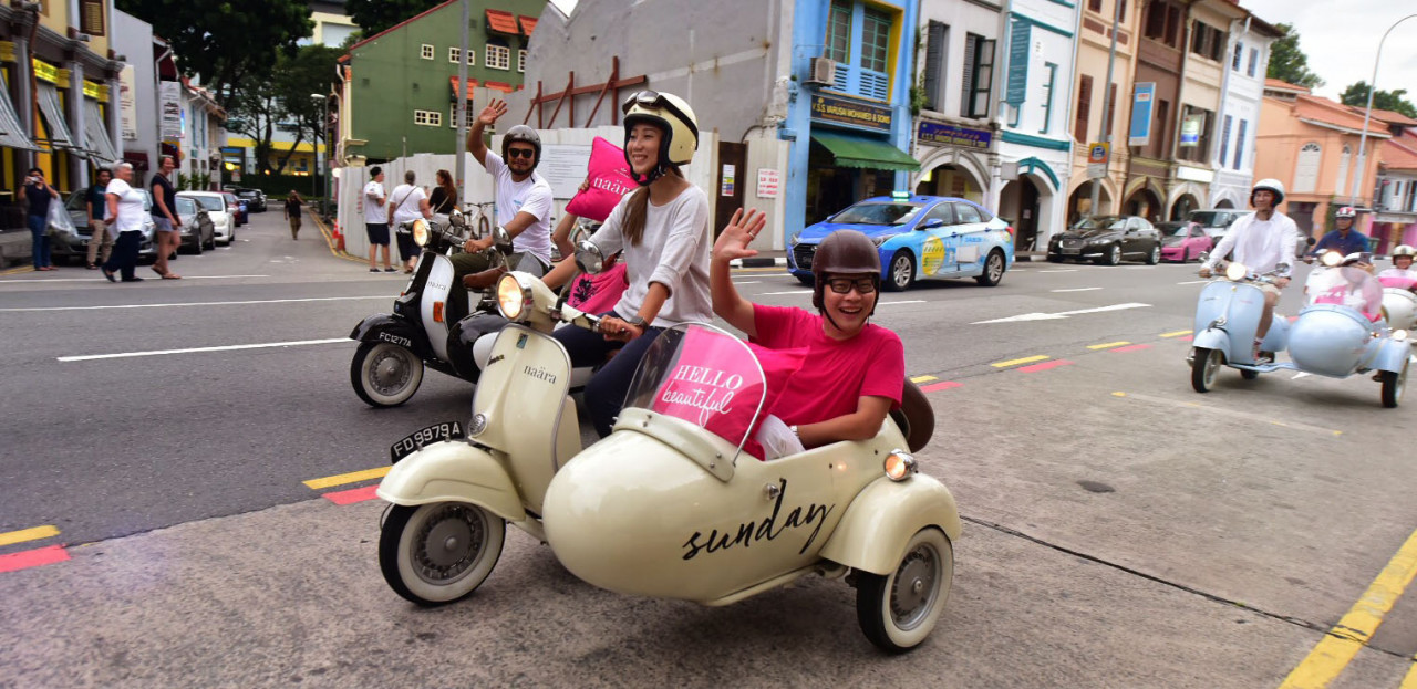 빈티지 베스파 사이드카를 타고 싱가포르의 명소와 소리, 맛을 가까이서 탐험할 수 있도록 설계된 독특한 경험을 선사하는 이색적인 트랙을 즐겨보세요. 싱가포르의 각기 다른 지역이 특징인 4가지 노선 중에서 선택하세요. 주요 문화유산 지역에 대해 알아보고, 역사적인 랜드마크를 지나고, 번잡함을 경험하고, 골목을 따라 내려가면서 현지의 보석 같은 명소를 발견하실 수 있습니다..