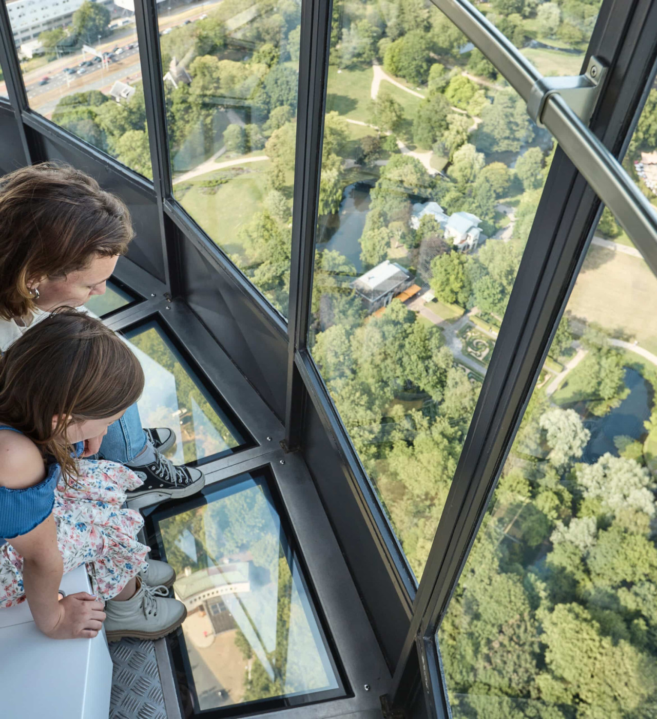 112미터 높이에서 도시와 분주한 항구의 광활한 전망을 즐겨 보세요. 더 높은 곳에서의 전망을 감상하길 원하신다면, 유리 바닥이 있는 회전 파노라마 엘리베이터인 유로스쿱을 타고 185미터까지 올라가 보세요. 185미터 높이에서는 맑은 날에는 멀리 헤이그까지 볼 수 있습니다.