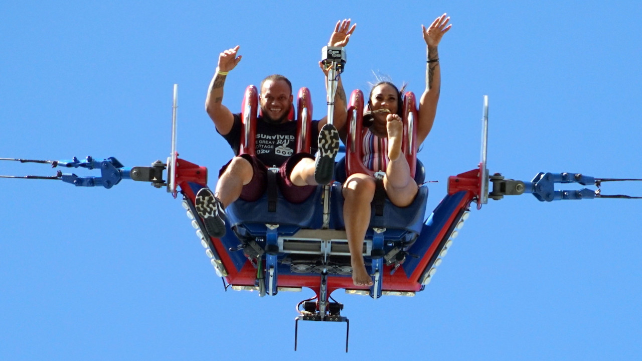 GX-5 익스트림 스윙에서 아드레날린을 뿜어내며 120km/h로 상승했다가 자유낙하를 경험해 보세요.
