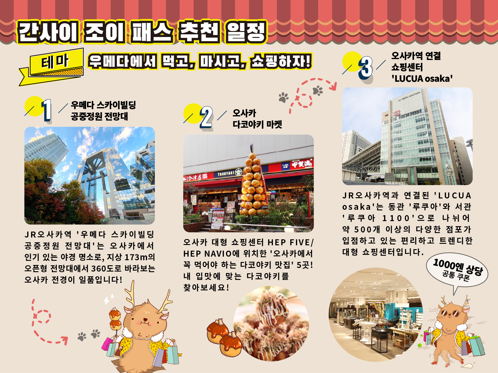 선택한 간사이 조이패스 -시설 3개 -시설 6개 -시설 3개+ JR하루카 편도 공항→신오사카 -시설 6개+ JR하루카 편도 공항→신오사카