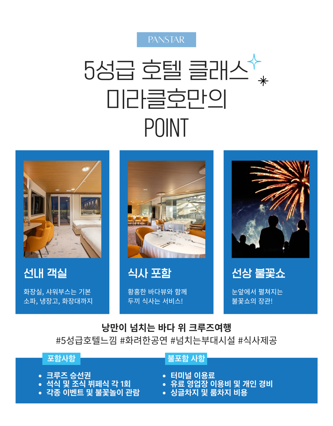 부산 대한해협  원나잇 크루즈 팬스타 미라클호 2일 광안리 불꽃축제 가족모임 계모임